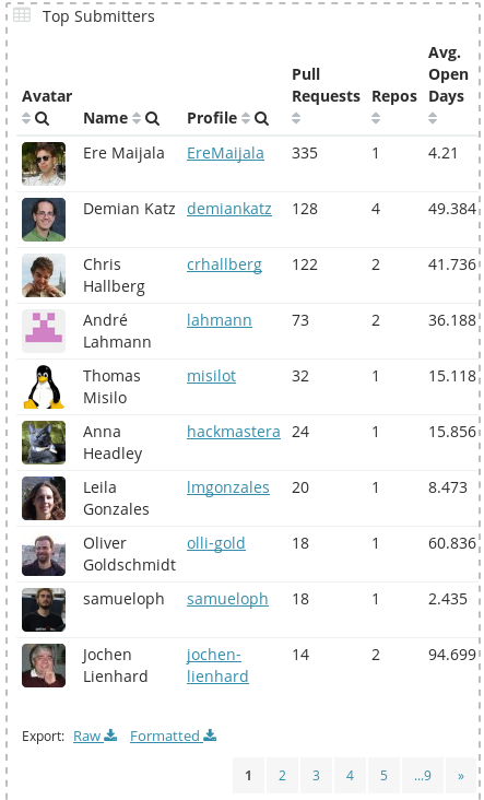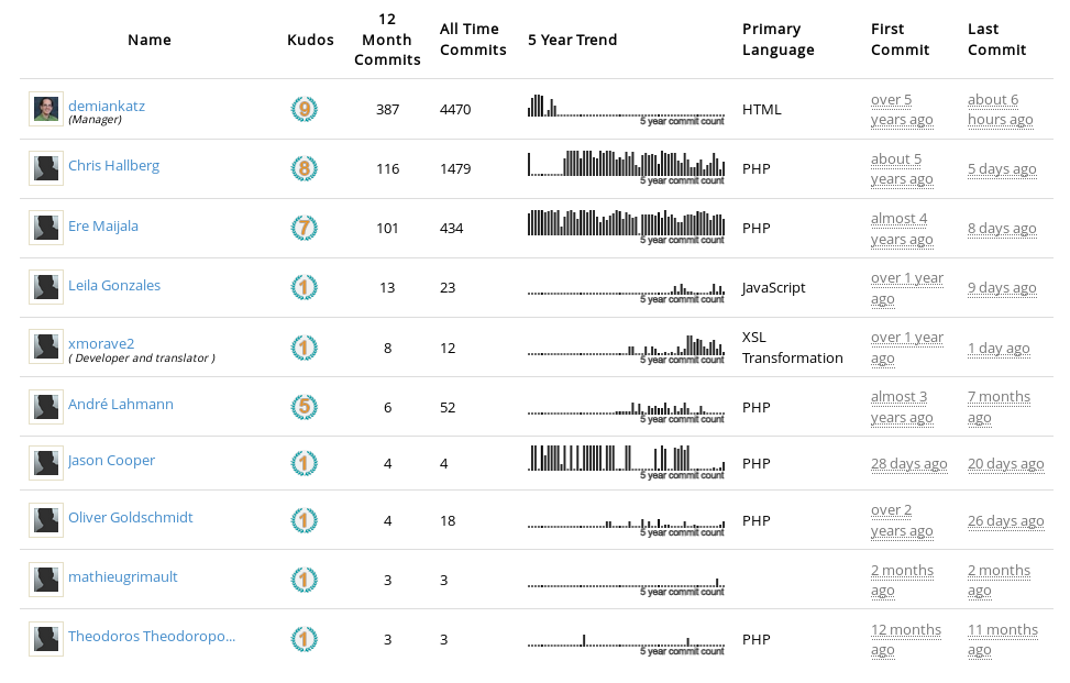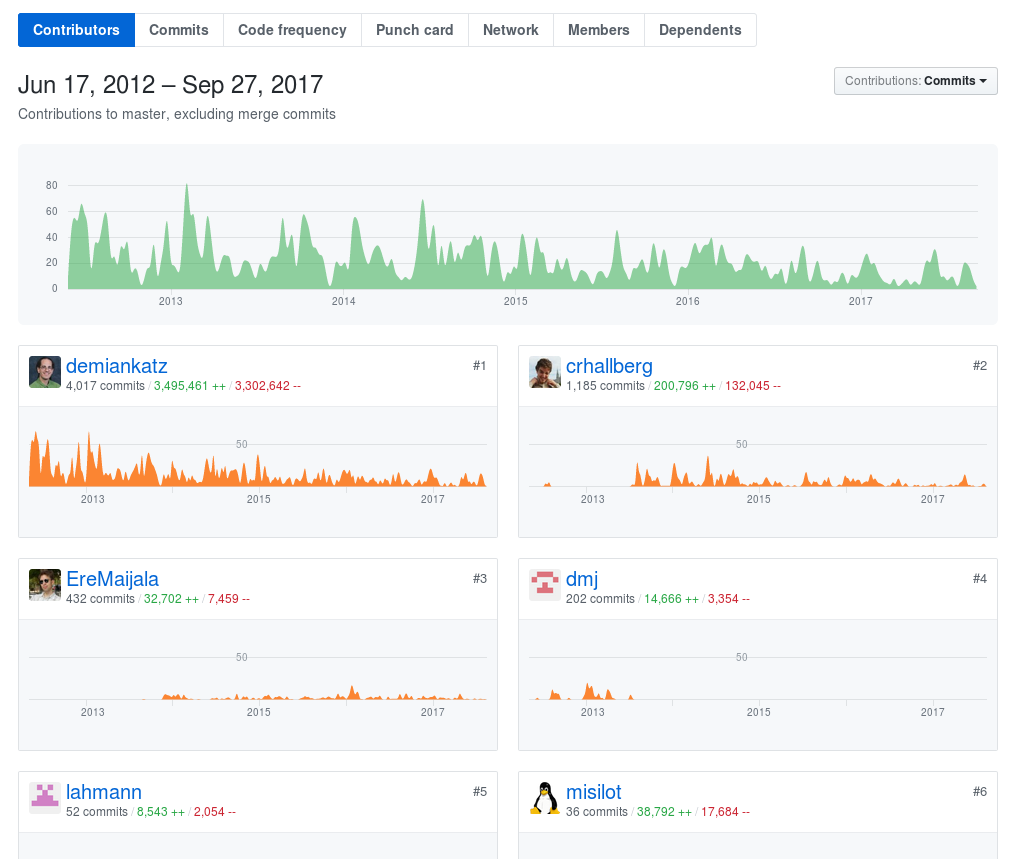 Erweiterungen, die in Forks vorgehalten und nicht via Pull Requests in die Hauptentwicklung zurückgespielt werden, wurden nicht erfasst.
