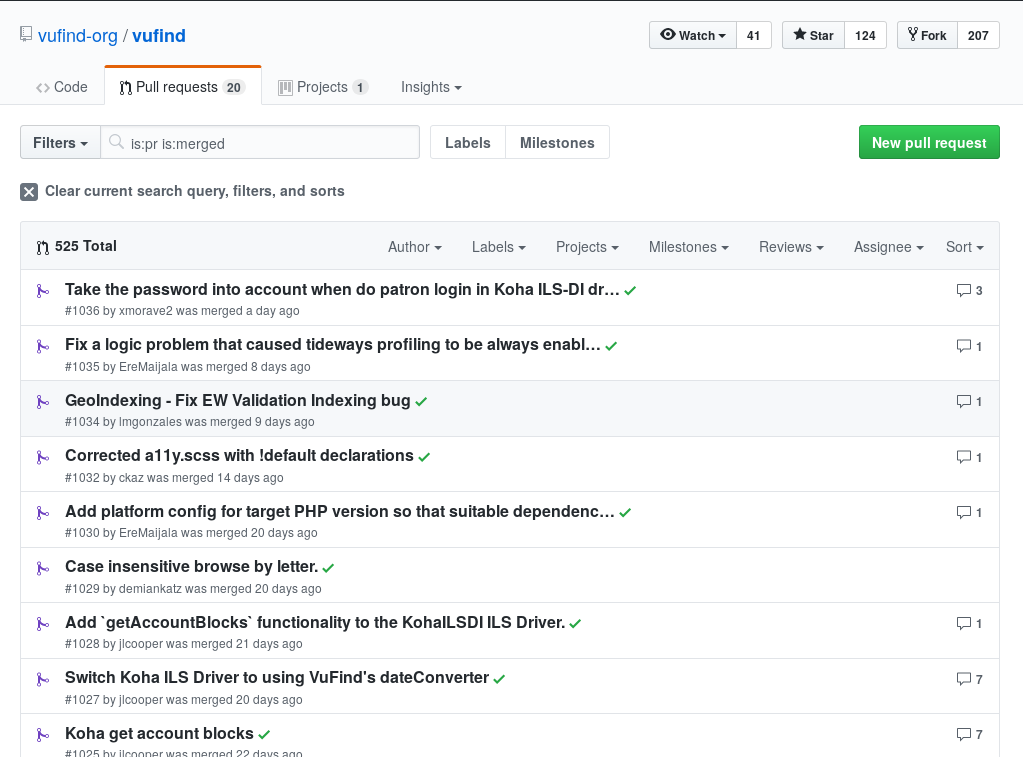 Gezeigte Statistiken basieren auf der Historie des GitHub-Accounts vufind-org.